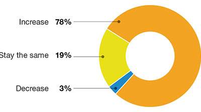 What’s more, nearly 40% of respondents expect double-digit increases, with 25% expecting a 10% to 14% increase and 13% expecting an increase of 15% or more. The largest group of respondents—at 42%—expect an increase in the 5% to 9% range, and 12% expect an increase of less than 5%, while 8% indicated that they did not know or were unsure.