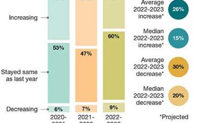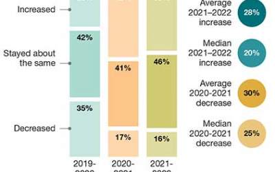 When asked how 2022 spending compared to 2021, 38% said it increased, down from 42% on the same question last year. The “stayed about the same” response grew to 46%, up from 41% last year, while those saying spending decreased did go up, but only 1%.