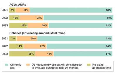 Meanwhile, there were positive signs in the survey results of both growing adoption and interest in many categories, with niches like autonomous mobile robots (AMR) and voice-directed solutions showing strong gains.