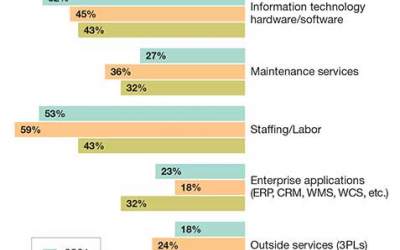 The survey also asked about which new purchases or substantial changes to existing systems across three broad areas of investment: IT; use of 3PLs; and various “system equipment” investments such as automated retrieval, lift truck and conveyors. Compared to last year, these areas were down, except for IT and software applications, which held steady at 41%,
