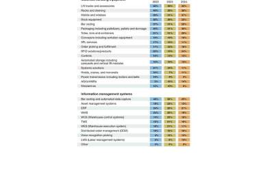 However, distinct plans and interests are clear, especially for optimizing labor resources. For one, some respondents continue to have substantial budgets for materials handling solutions, and the survey shows growth or strong interest across several categories. The bright spots include increased interest in labor management systems (LMS), high interest in goods-to-person (GTP) robotics, and growing attention to maintenance services and advanced analytics to draw value from existing systems.