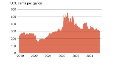 “We also expect international economic experiences to continue to offer headwinds to higher diesel prices,” says Muenster. “This includes our expectation for U.S. freight market volumes to gradually improve over 2025. On average, we expect diesel prices will be about 3% to 5% lower during 2025 than 2024. We expect diesel prices to decrease into the beginning of 2025 before rebounding in the
