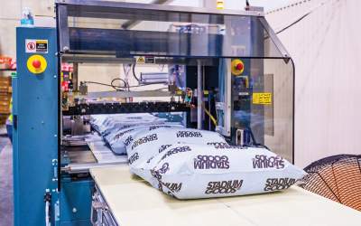 Before using the system, packaging single-line orders for Stadium Goods was done using manual pack out stations, with up to 27 stations in use during peak times. Now, except for times of peak order volume, the automation handles the pack out tasks, with 12 pack out stations in reserve for peak times or multi-line orders.