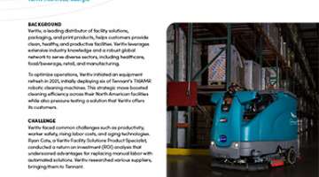 Veritiv boosts operational efficiency and facility cleanliness by deploying Tennant T16AMR robotic floor scrubbers, automating over 470 million square feet of warehouse cleaning.