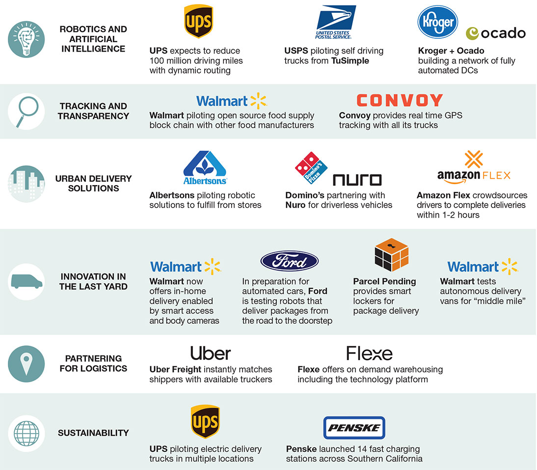 Shared transportation and warehouses. Many companies are adopting shared models to help smaller sellers or those serving small demand centers consolidate scale and feasibility.