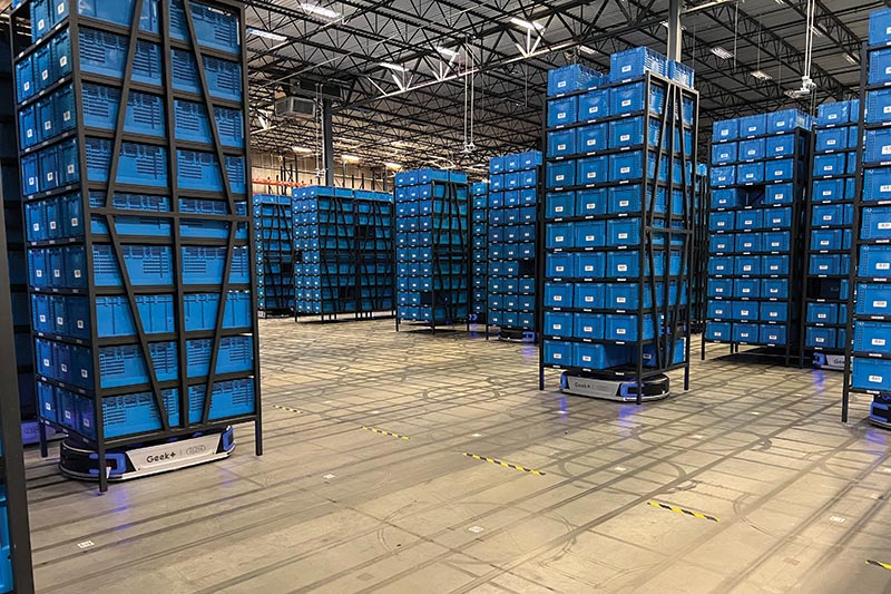 “The Geek+ system can dynamically slot and re-slot inventory based off a heat score assigned to each active SKU,” Kraft says. “The heat score assigned to a SKU can be determined by historical velocity data, actual or predicted demand, or any combination of the above.”