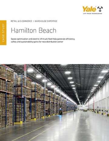 Hamilton Beach improved storage density, reduced product damage, and enhanced safety and sustainability by partnering with Yale Lift Truck Technologies and Black Equipment for their new distribution center.
