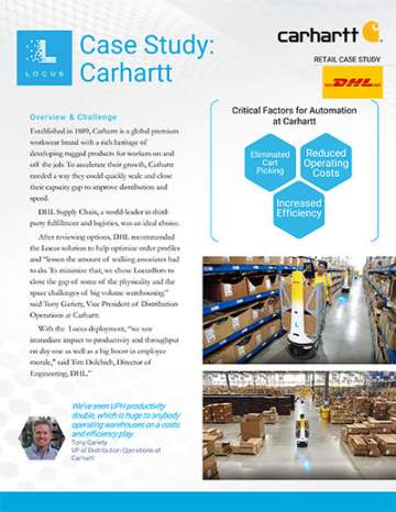 Carhartt used AGVs previously, but found the usability, cost model, and maintenance of Locus’ AMRs to be more flexible and efficient.