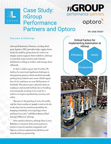 See how nGroup, a leading 3PL provider, transformed its putaway warehouse operations by integrating Locus Robotics and Optoro.