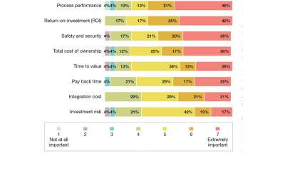 In the increasingly competitive logistics landscape, automation can be a strategic step toward unlocking efficiency, profitability and a competitive edge. When selecting robotics, companies use process performance (46%), return on investment (42%), safety and security (38%) and total cost of ownership (38%) as their key criteria. Other important metrics that factor into buying decisions include time to value (29%), payback time (29%), integration cost (21%) and investment risk (21%).
