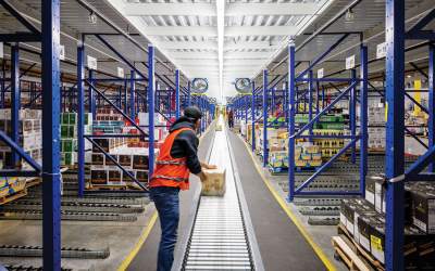 The medium-movers that represent about 40% of the volume are still manually picked in waves in a four-level pick module. The pre-sorter allows an order selector to pick two waves at a time, reducing visits and walking. The pre-sorter, which sits in front of the primary sorter, segments the cases into the right wave. “That has been a huge win for us,” says Osma.
