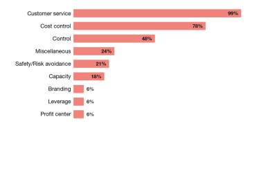 “Operating a private fleet provides control over service levels, guarantees availability and assures cost competitive transportation alternatives regardless of market conditions,” says Moore. In this year’s survey, customer service was cited by almost every respondent.