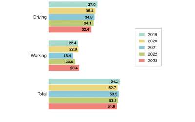 Private fleet drivers spend 62% of their time driving, working an average of 51.9 hours a week, down by more than two hours a week from last year’s average of 53.3 hours a week. Of these hours, 32.4 are spent behind the wheel, while 20.9 hours are spent performing other non-driving tasks such as loading, unloading, inspections, paperwork and yard movements.