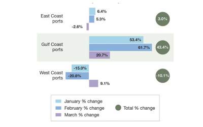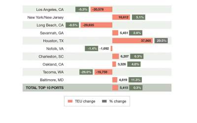 The top Gulf Coast ports, especially the Port Houston, benefitted the most. Descartes attributes the increase to cargo shipments of electronics, furniture and machinery typically associated with Asian manufacturers.