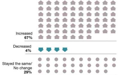 say that their salary levels have increased and 29% say their salary levels have stayed the same. Only 4% of respondents are earning less money than they did in 2022. Asked by what percent their salary has changed, the average increase was by 9% and the average decrease was by 11% (compared to 19% last year).